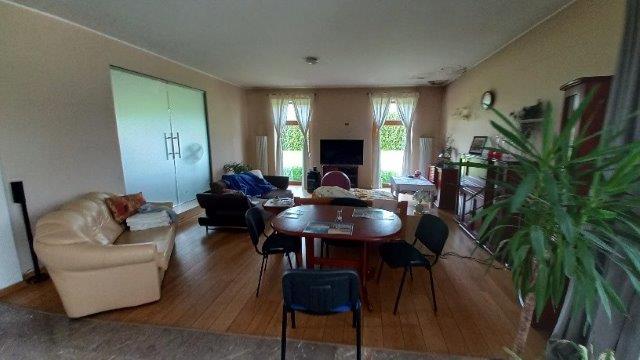 działki nr 109/11; 109/12; 109/23; 109/24 o łącznej powierzchni 5 517 m(2). Nieruchomość jest zabudowana budynkiem mieszkalnym jednorodzinnym w zabudowie wolnostojącej, niepodpiwniczony, 2-kondygnacyjny. Powierzchnia użytkowa budynku wynosi 557,60 m(2). Budynek składa się z dwóch połączonych ze sobą części – mieszkalnej oraz garażowo-gospodarczej. Z tyłu budynku znajduje się taras utwardzony płytami, basen oraz budynek gospodarczy z wiatą. Instalacje zamontowane w budynku: ogrzewanie – piec na ekogroszek, część parteru ogrzewanie podłogowe, odkurzacz centralny, panele solarne (do podgrzewania ciepłej wody) alarmowa z monitoringiem.